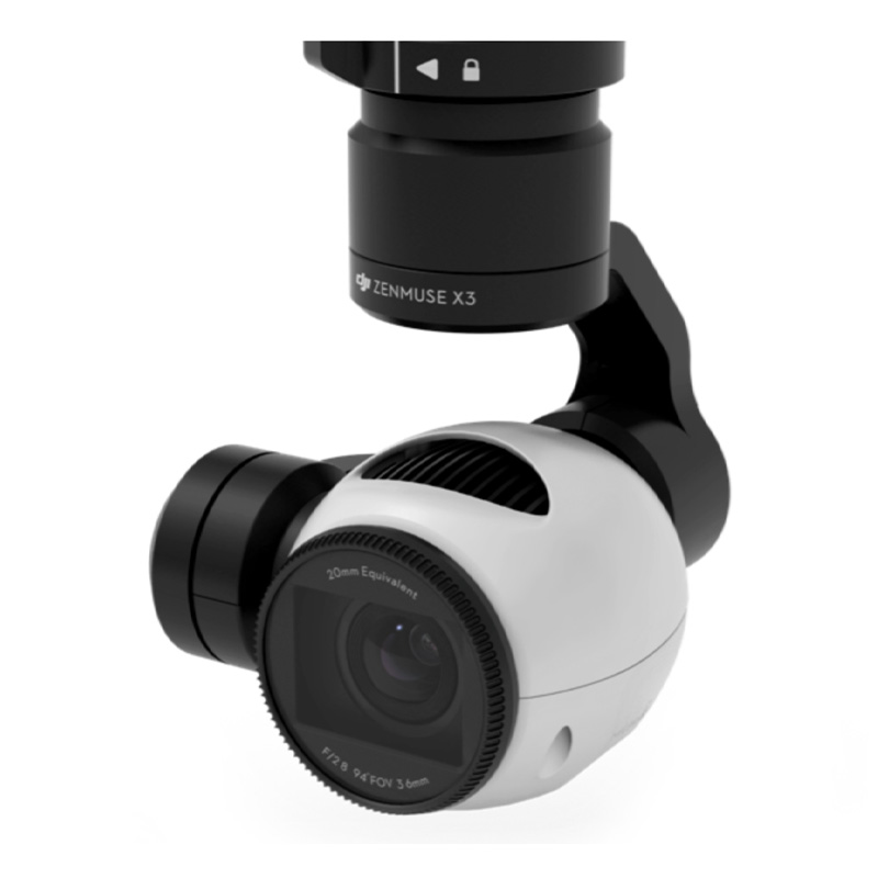 Câmera estabilizada em gimbal de 3 eixos usada no Inspire 1 e na linha Osmo, equipada com sensor de 12 MP capaz de gravar em 4K.