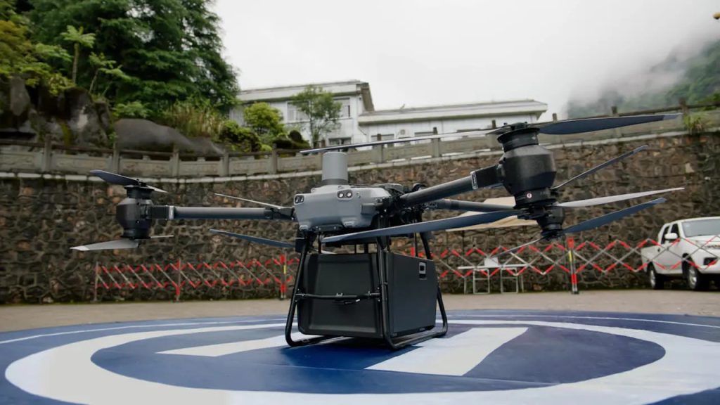 O novo drone de entrega da DJI é projetado para resistir a todas as condições climáticas, apresentando uma classificação de proteção contra intempéries IP55, e pode enfrentar ventos de até 12 m/s. Alcançando uma velocidade máxima de voo de 20 m/s, o drone pode permanecer no ar por até 18 minutos com duas baterias autoaquecidas e uma carga útil de 30 kg.