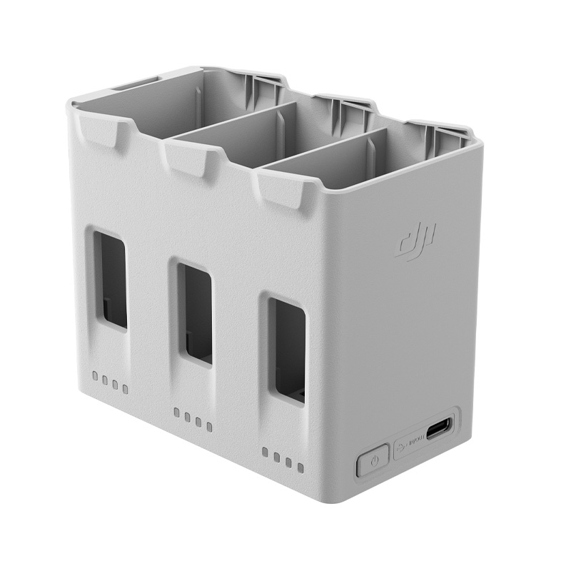 | Tempo de carga (min) | 1 BAT: no drone + carregador 65 W: 73min 1 BAT: no hub + carregador 65 W: 45min 3 BAT: no hub + carregador 65 W: 87min |