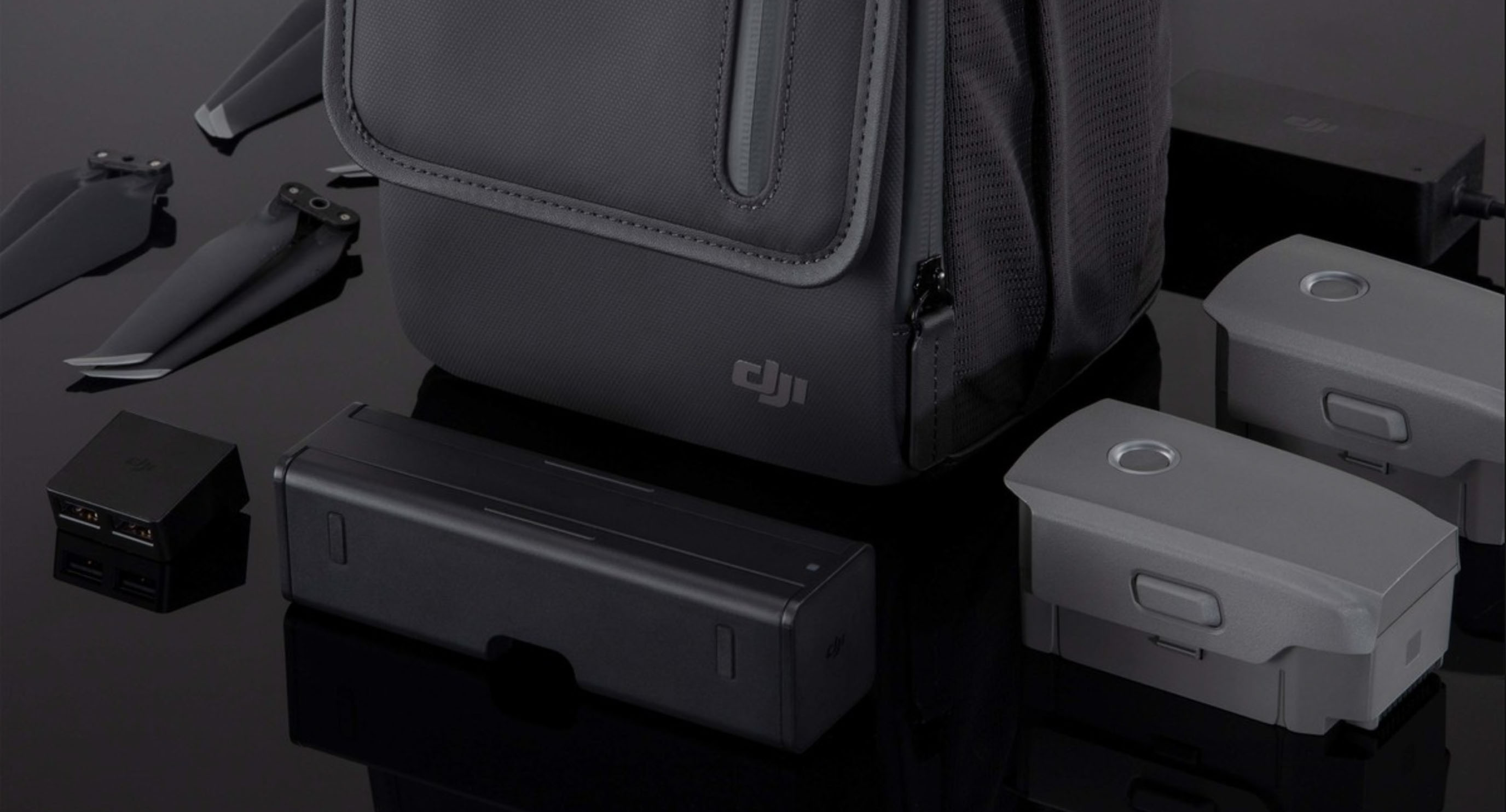 O Kit Mavic 2 Fly More inclui duas Baterias de Voo Inteligentes, um Carregador de Carro Mavic 2, um Hub de Carregamento de Bateria, um Adaptador de Bateria para Carregador Portátil, Hélices de Baixo Ruído e uma Bolsa de Ombro Mavic 2, proporcionando suporte completo durante as filmagens.