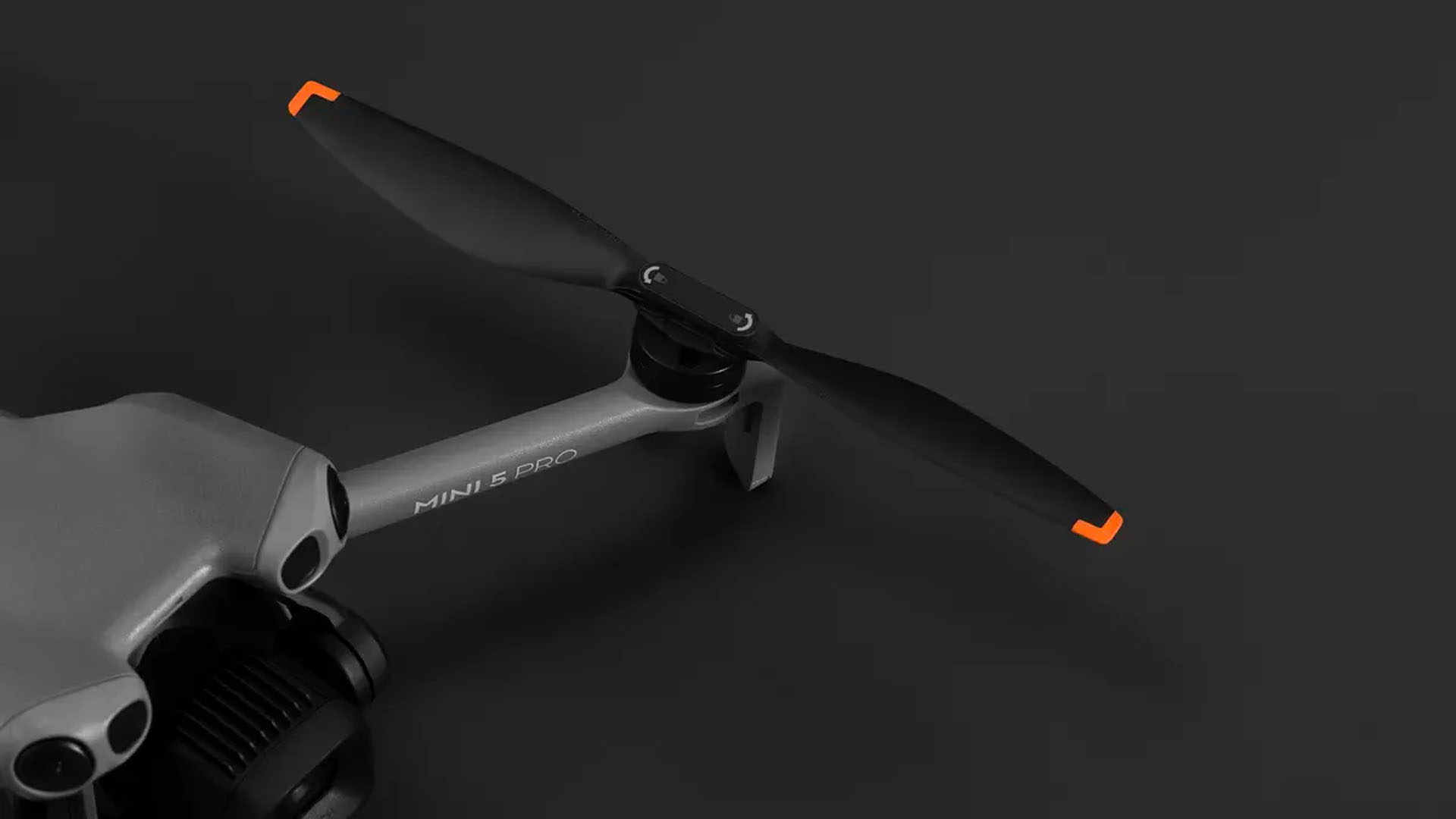 Cada pá da hélice do DJI Mini 5 Pro foi submetida a testes precisos de balanceamento dinâmico para aumentar a eficiência aerodinâmica e reduzir o ruído.