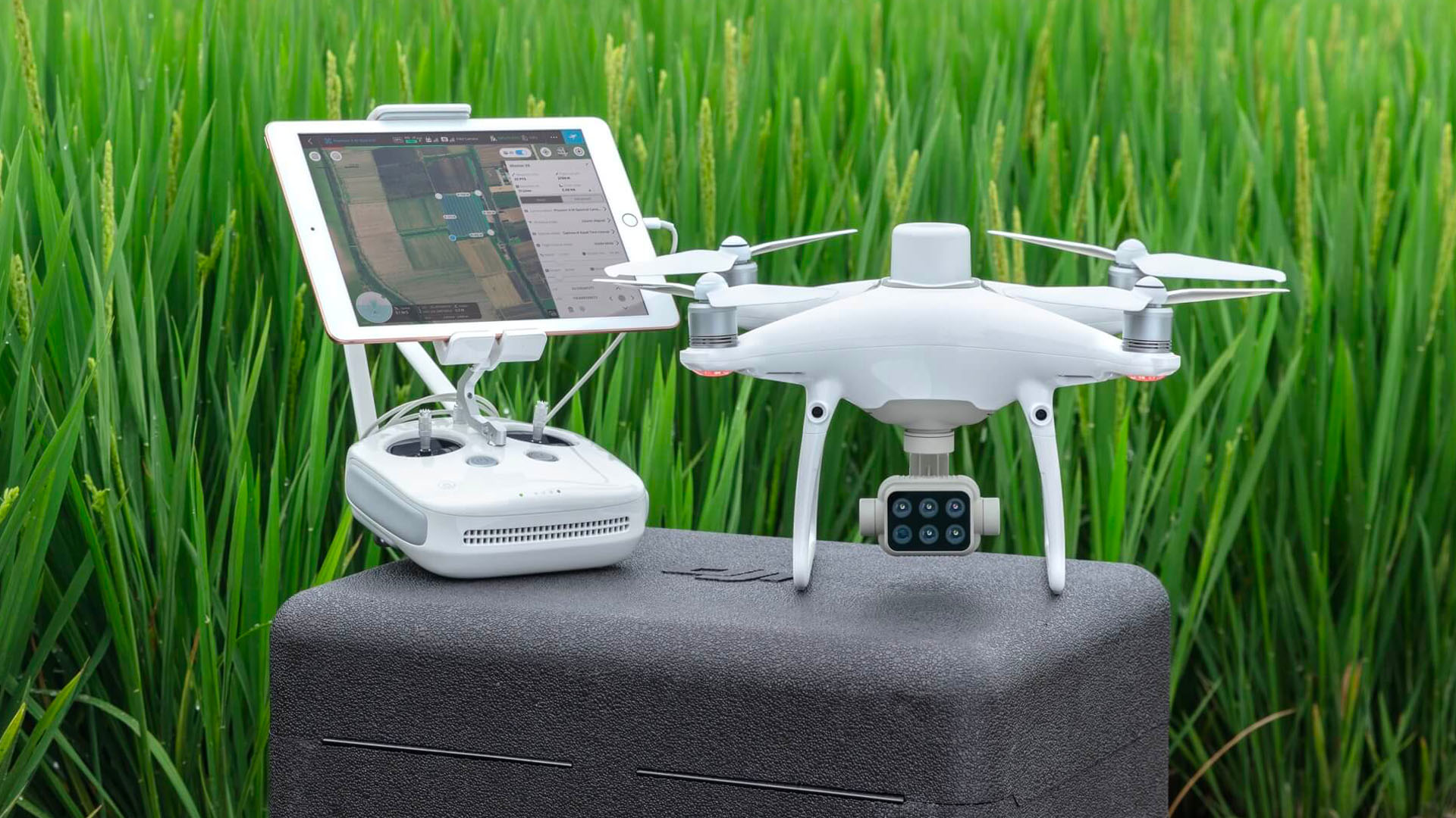 O P4 Multispectral integra sensores de posicionamento e controle de voo que proporcionam coleta de dados confiáveis e georreferenciados durante as missões, e trabalha em conjunto com ferramentas de software para planejamento de voo e processamento de dados, oferecendo um fluxo de trabalho que conecta a aquisição aérea de imagens à análise de informações essenciais para manejo agrícola e estudos de uso do solo.