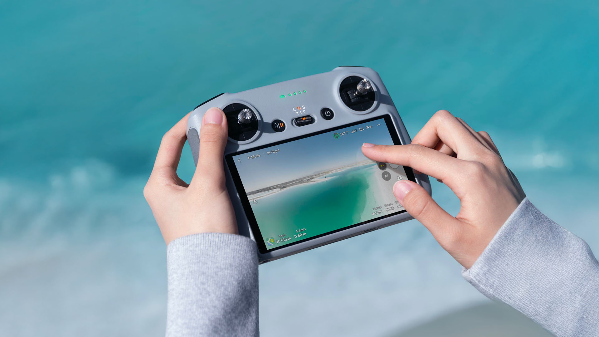 A DJI expande sua linha de controles com o DJI RC, um controle remoto leve com uma tela sensível ao toque integrada de 5,5 polegadas. Com o aplicativo DJI Fly já integrado, os usuários não precisam montar seus smartphones no controle, liberando seus dispositivos pessoais durante a experiência de voo.