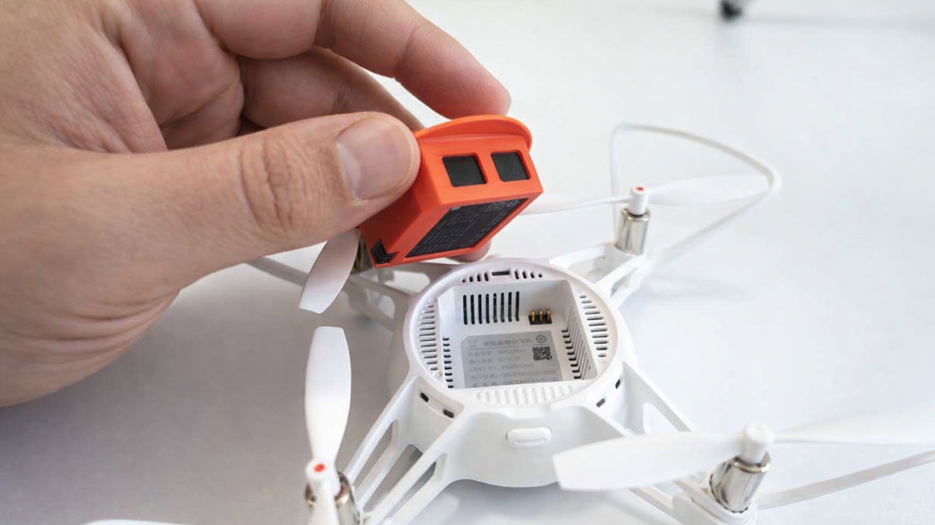 A bateria do MiTU possui um formato que se integra ao corpo do drone e garante a ele até 10 minutos de voo.